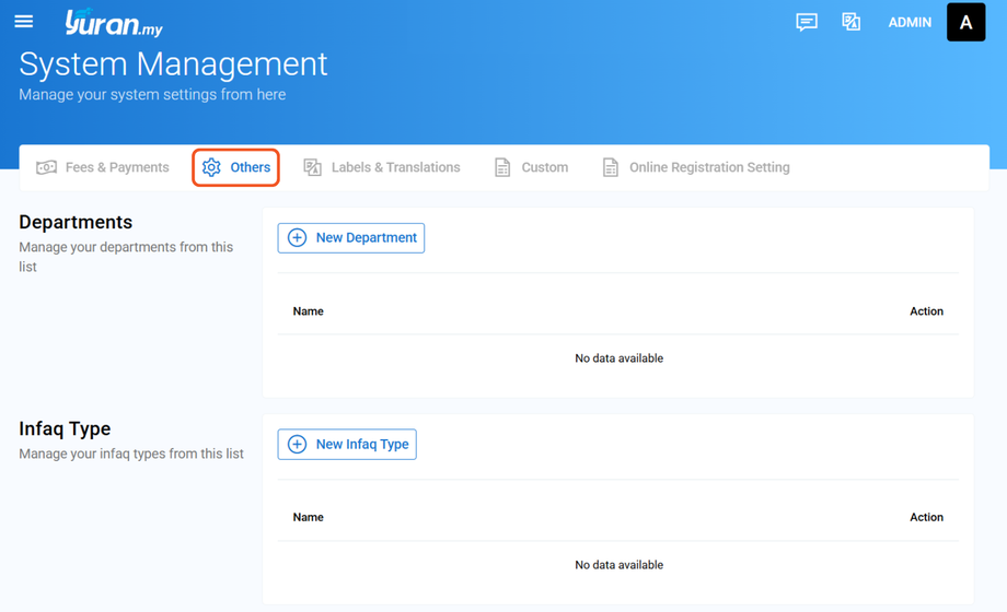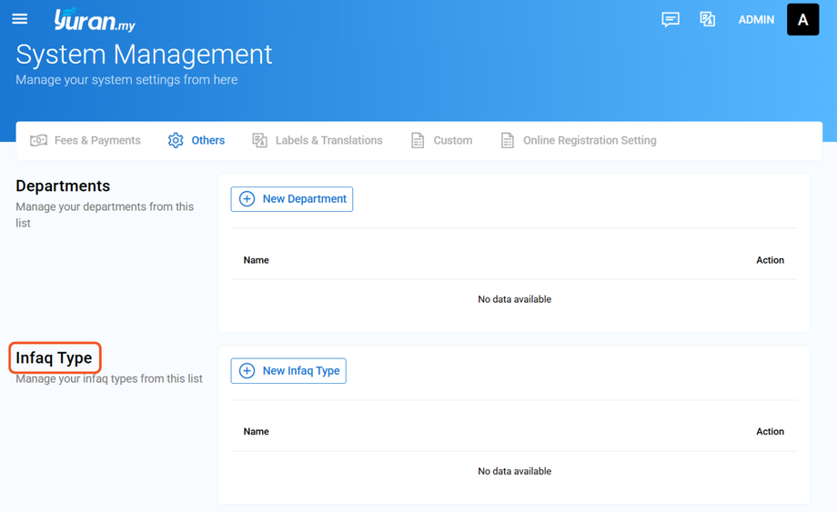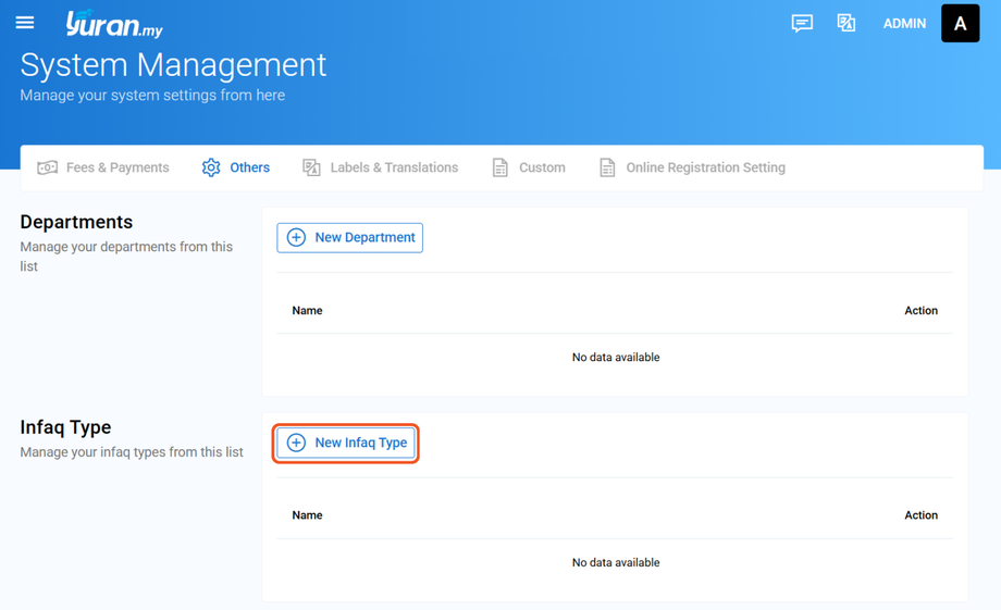 Step 3: Infaq Type will be the place where you will manage your infaq.