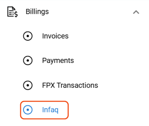 Step 1: Click Billings -> Infaq menu at the left panel.