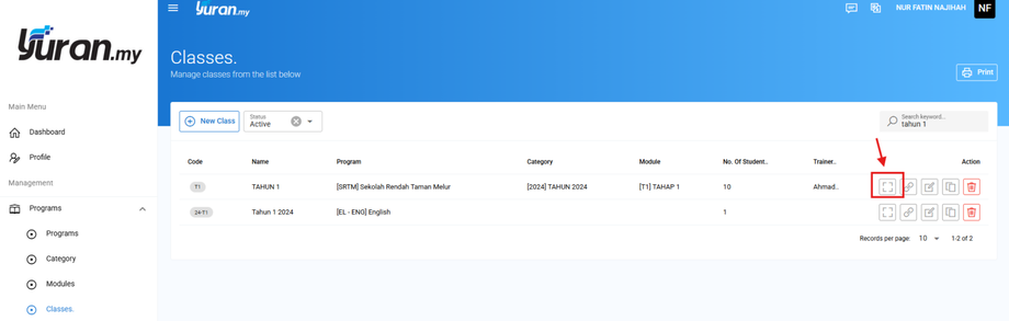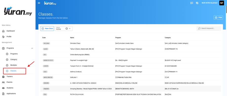 * For more details on creating a new class, refer User Guide 1.0 Preparing your Yuran.my System V3.