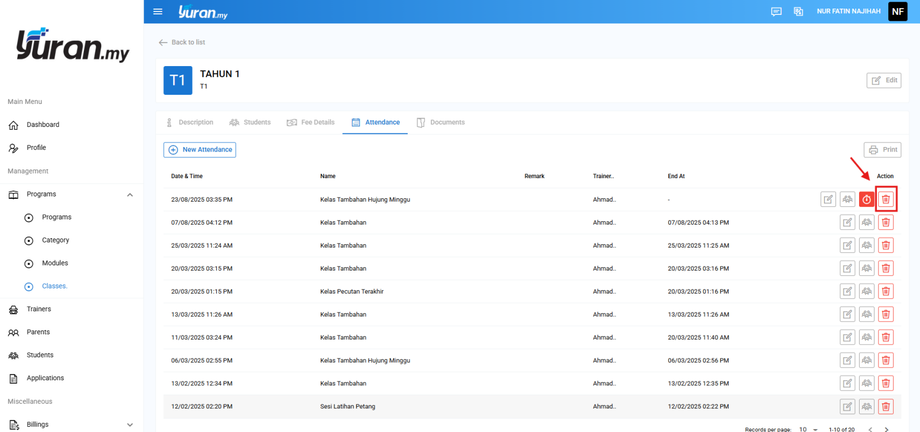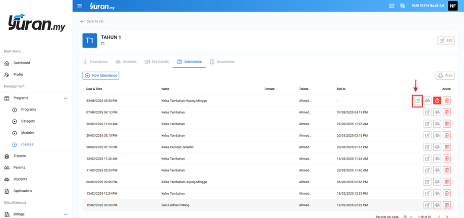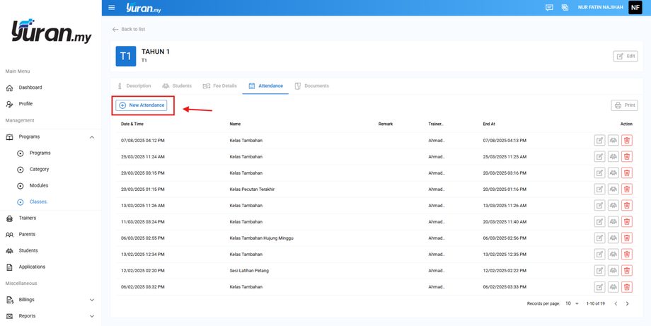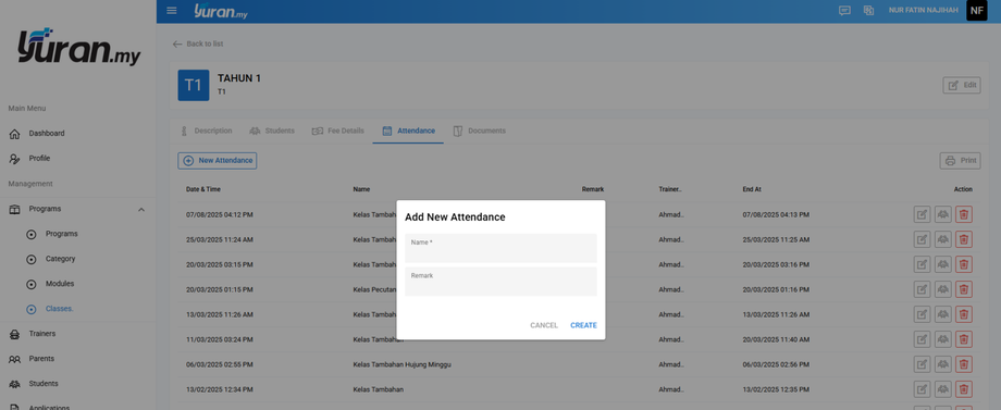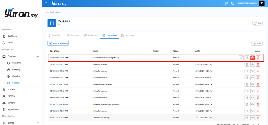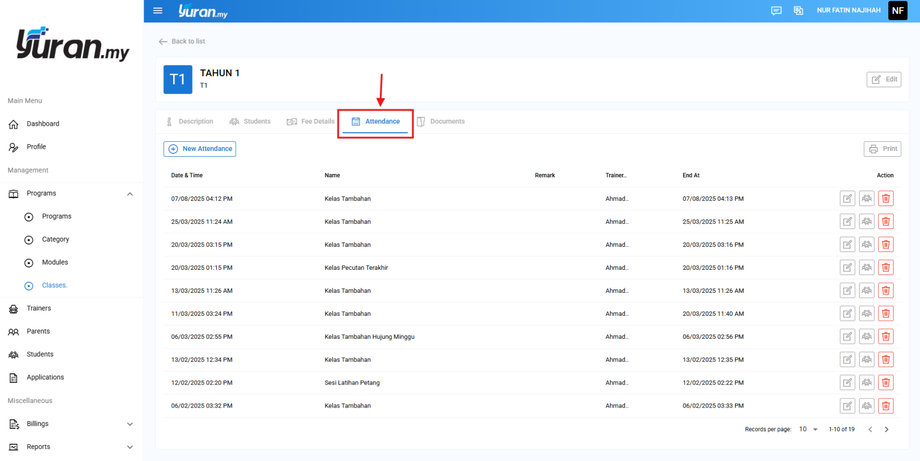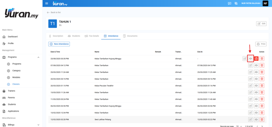 Attendance module is one of the new features in Yuran.my System version 3. This attendance feature will able to help in managing the class/event attendance.