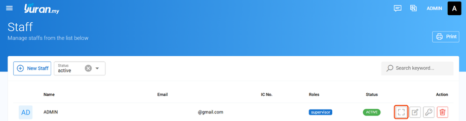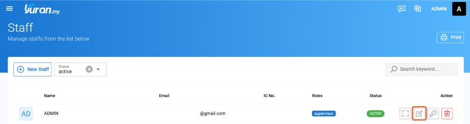 Step 1: Click the "Edit" icon at the Action section on Staff page.