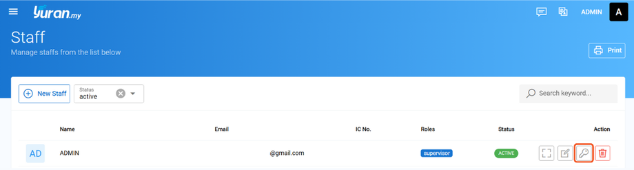 Step 1: Click "Change Password" icon at the Action section of the staff.