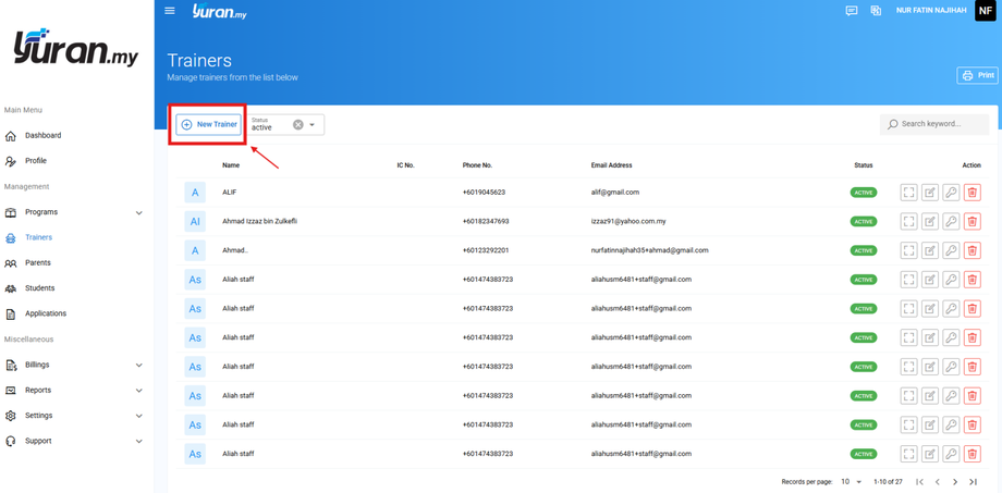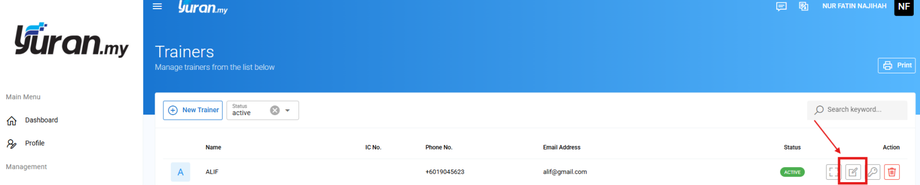 Step 1: Click the Edit icon at the Action section on Trainers page.