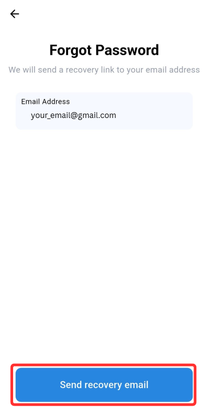 Step 2: Enter the Email Address to send the recovery link and click "Send Recovery Email" button.