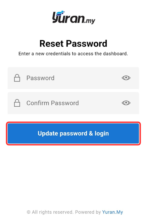 Step 4: Insert new password and confirm the password. Then, click "Update password & login" button to reset your password.