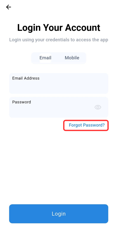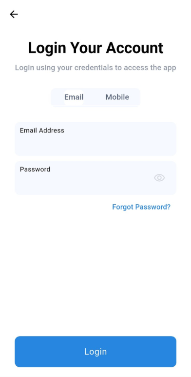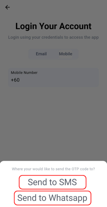 At this Login Page, user able to choose either login using Email or Mobile credentials to access their account.