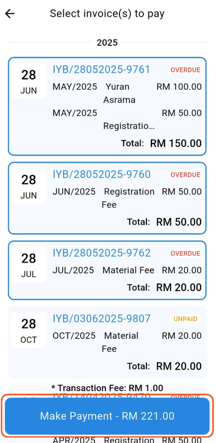 14.6.2 How to Make Single Payment in Yuran.my app