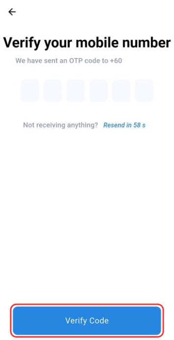 Step 3: Enter the OTP code and click "Verify Code" button. If you did not receive anything, resend the code or choose other option.