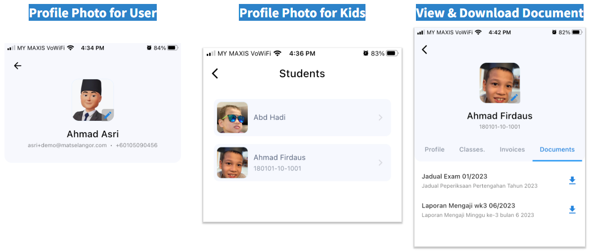- Apps User will also be able to update profile photo for kids (for academy tenant)