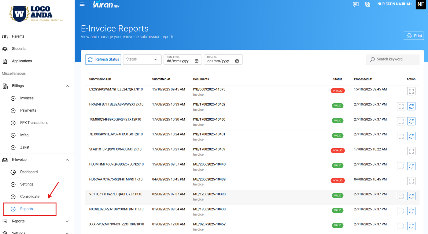 4.0 Laporan e-Invois (Reports)