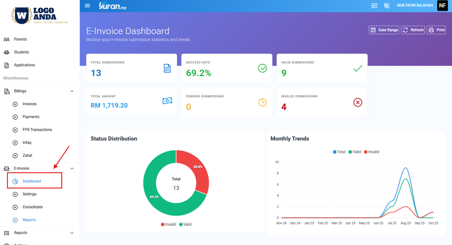 5.0 Papan Pemuka e-Invois (Dashboard)
