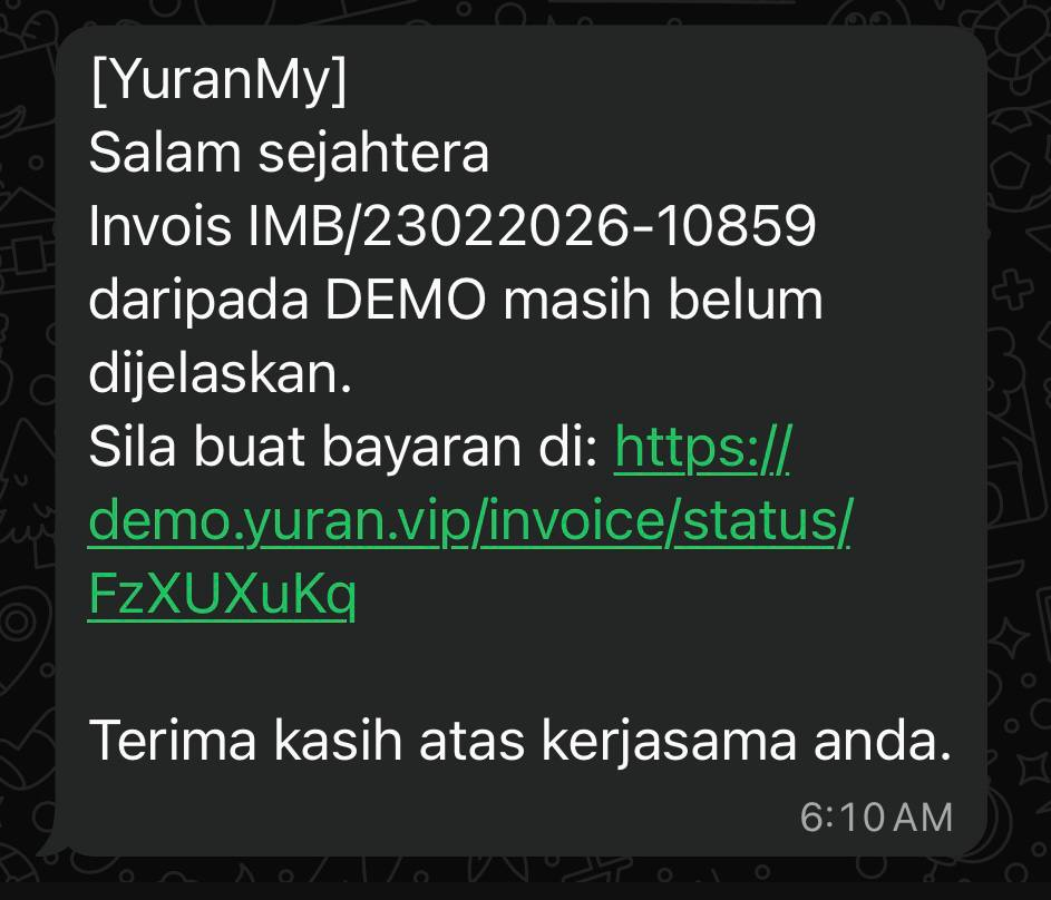 ii. Contoh notifikasi mesej bagi invois peringatan