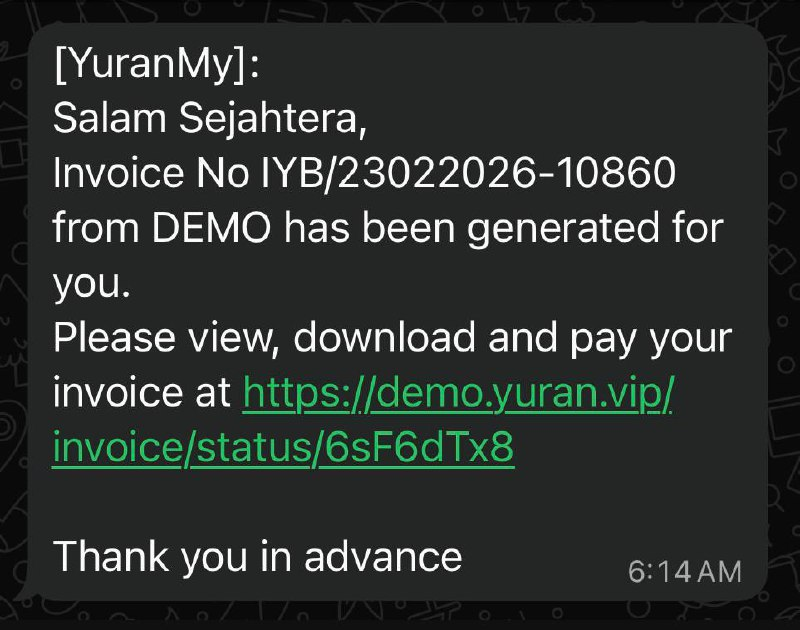 i. Contoh notifikasi mesej bagi invois yang baru dijana