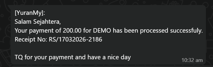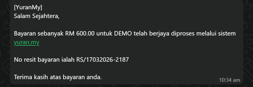 iii. Contoh notifikasi mesej untuk resit pembayaran