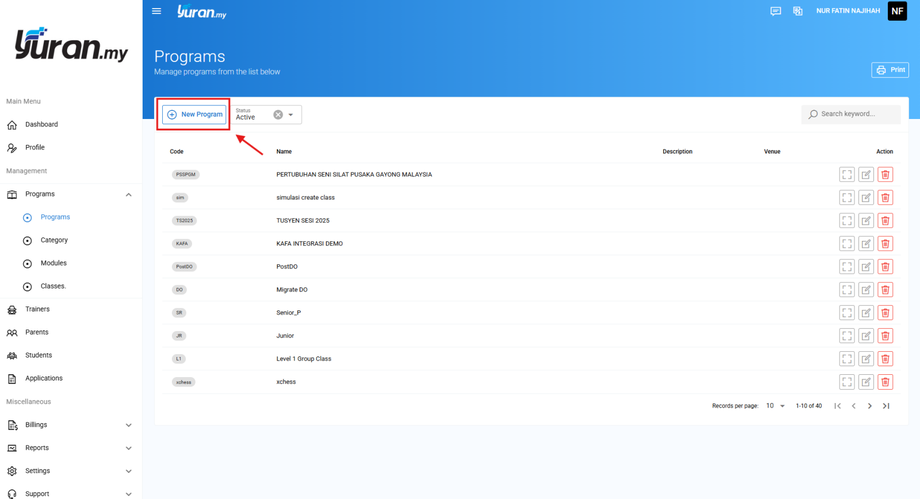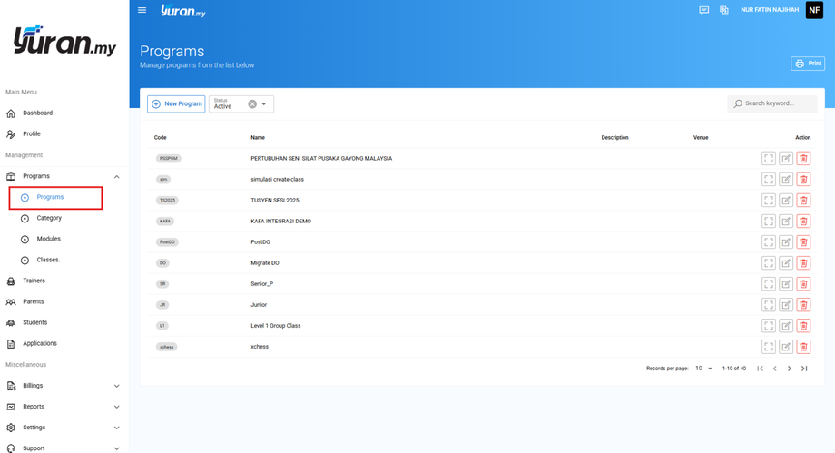 Step 1: Click the Edit icon at the Action section on Programs page to edit the program’s info.