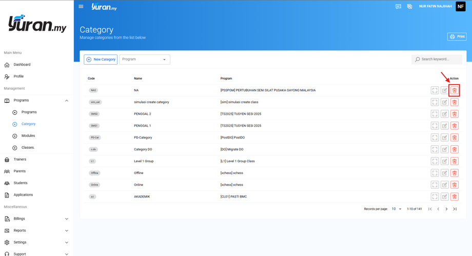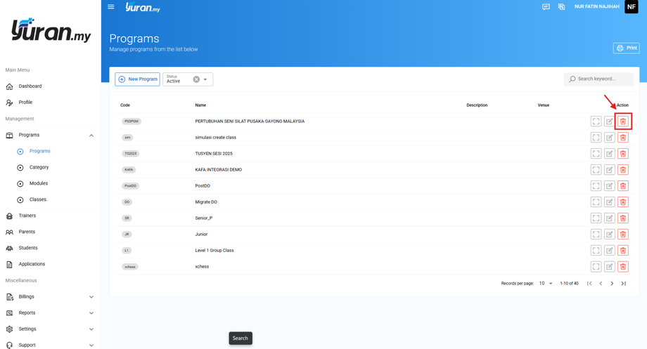 Step 1: Click the Delete icon at the Action section on Programs page.