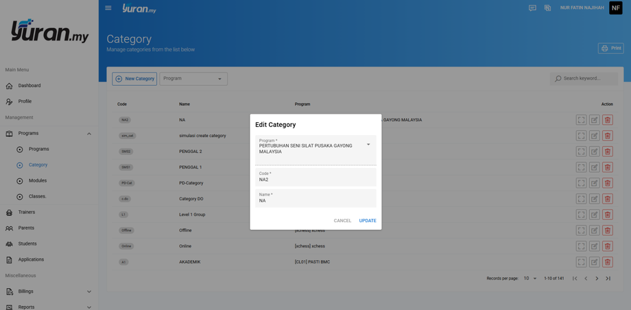Step 2: Once click the Edit icon, Edit Category form will appear. User able to edit the information and click Update button to save the button.