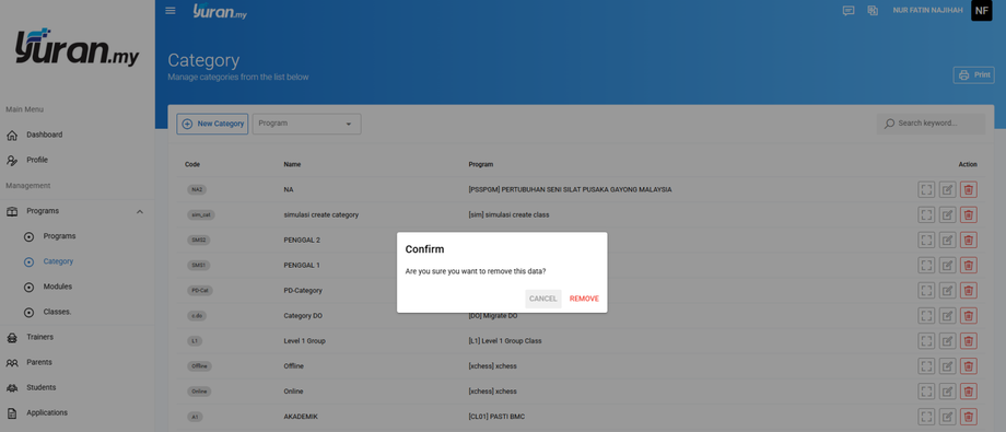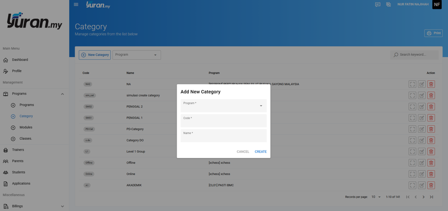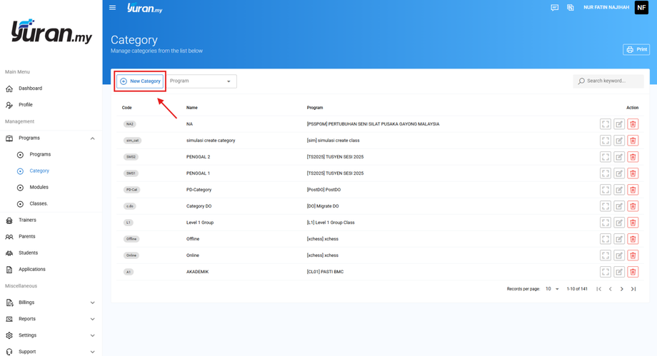 Step 1: Click Programs > Categories under Management main menu at the left panel.