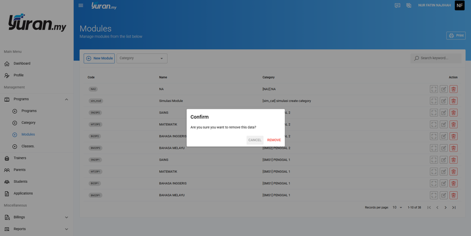 Step 1: Click Programs > Modules/Activities under Management category at the left panel.