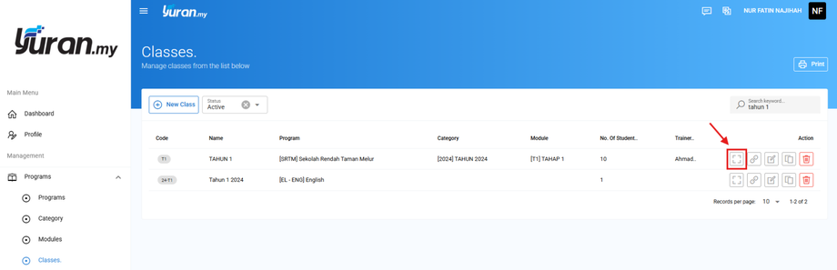 Step 1: Click the View icon at the Action section on Classes or Events page.
