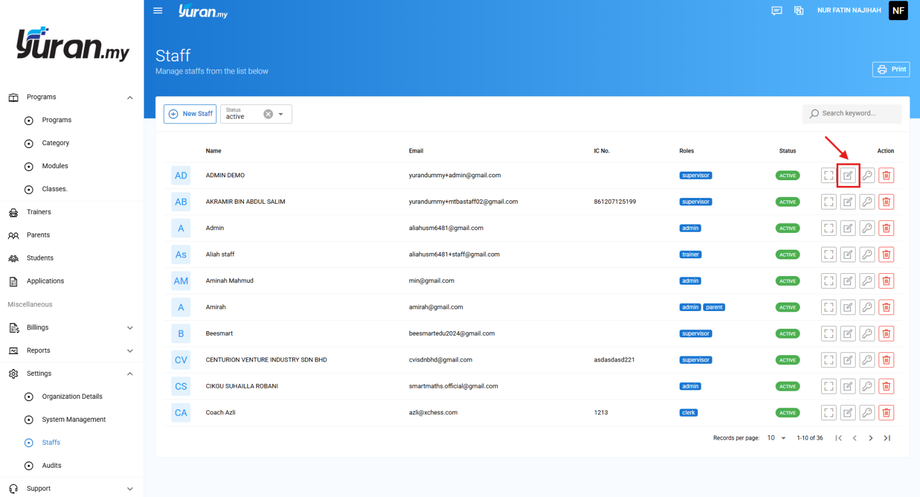 Step 1: Click the Edit icon at the Action section on Staff page.