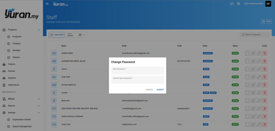 Step 1: Click Change Password icon at the Action section on Staff page.