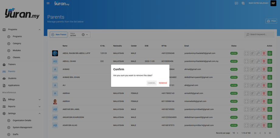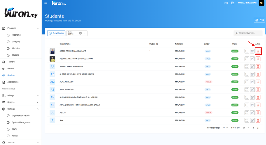 3.2.4 How to Delete Existing Students/Players/Assets?